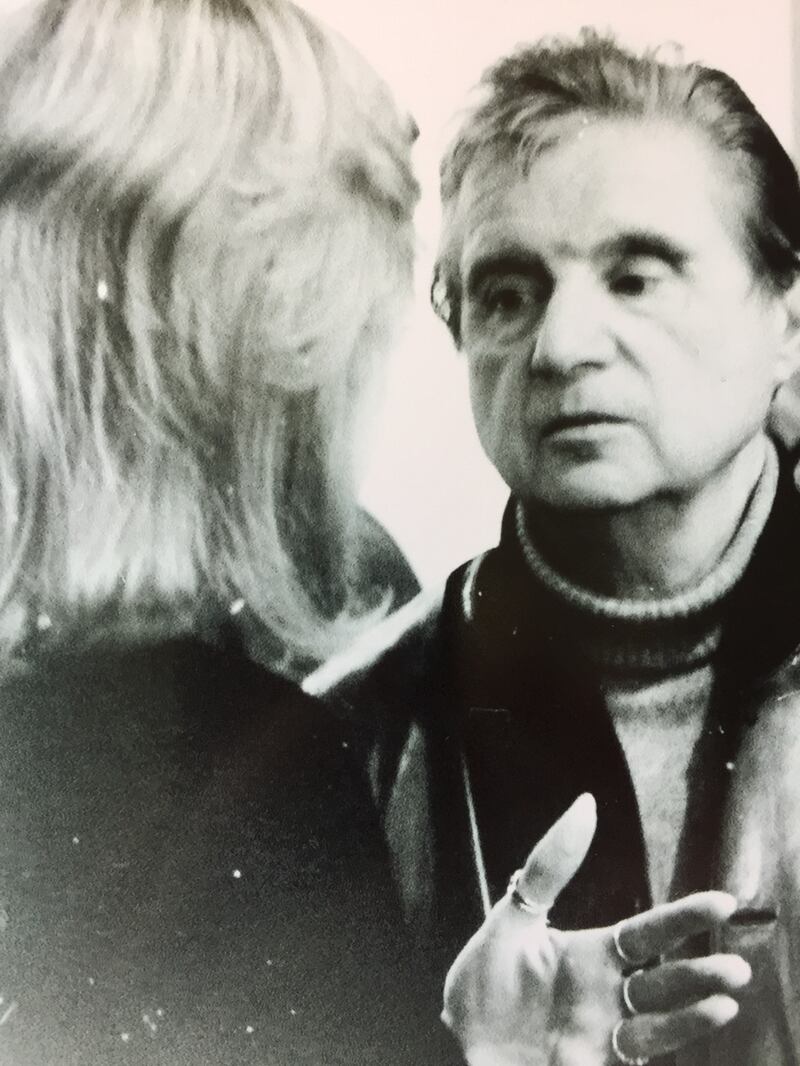 The photographs Anne “digs out” are from an opening of hers in the Galerie Darthea Speyer in Paris in 1979, black and whites taken by Edward Quinn, and a colour shot taken by John Edwards at a dinner after an opening of Bacon’s work at the Galerie Maeght Lelong in Paris again, in 1984.