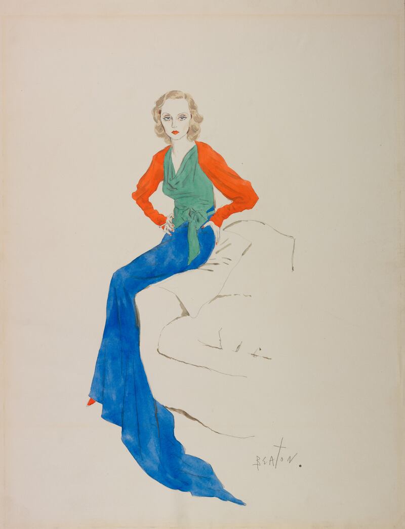 The show charts Beaton’s transformation from middle-class suburban schoolboy to glittering society figure and the unrivalled star of Vogue (he contributed to the title for 50 years). Once taken up by the famous Sitwell siblings (Edith, Osbert and Sacheverell) from 1926 on Beaton’s doorbell “never ceased to ring”. He was ushered into increasingly rarefied circles as the decade progressed, peopled by socialites Edwina Mountbatten and Diana Cooper, actress Anna May Wong, set and costume designer Oliver Messel , Stephen Tennant, various Maharanis, the Mitford sisters, Loelia Duchess of Westminster, John Betjeman, Oliver Messel and the Queen. Many of these characters feature in the exhibition and were captured in Beaton’s first book published in 1930, The Book of Beauty.