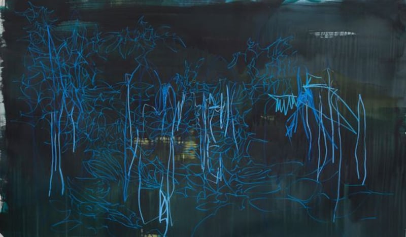 His near-contemporary, William Crozier, took a different approach. For Crozier, the landscape around West Cork, where eventually he bought a home in 1983, was as dazzling as O’Malley’s tropics. Hot yellows, deep indigos, glowing greens and bright crimsons make up his gardens, seas, fields and trees. And yet there’s a darkness to them, lending a brooding sensibility to his scenes. Black lines and shapes make you think that this is a landscape that is not always kind.