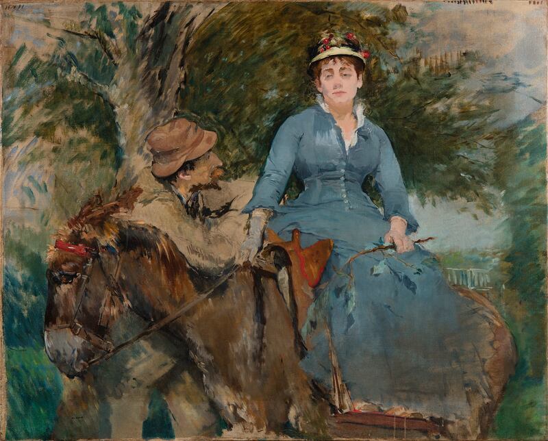 As several exhibits confirm, Morisot was surely his ideal model. She pointedly commented on how much trouble he was having completing the portrait of Eva. X-ray studies confirm her impression, revealing many erased versions of the face. The peony blossom at Gonzalèz’s feet is echoed in Manet’s small, very beautiful study of peony blossom and secateurs from the Musée d’Orsay, hung on the wall close by. Also included is William Orpen’s monumental Homage to Manet, a group portrait that includes George Moore, with the Gonzalèz portrait prominently positioned on the wall behind.