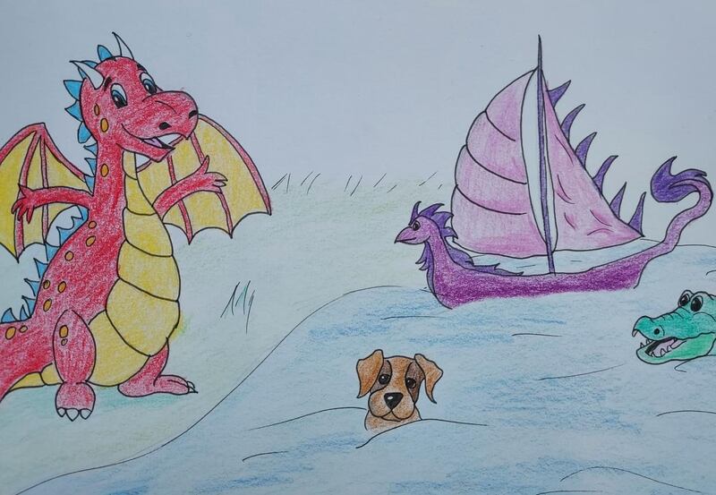 Once upon a time, in a different world, there was a dragon called Billy. He was a small, red, cute baby dragon. Billy lived in a forest beside a lake. There were crocodiles in the lake. Billy was afraid of the lake because the crocodiles had eaten his mammy and daddy. Billy’s big sister – Milly – looked after him.