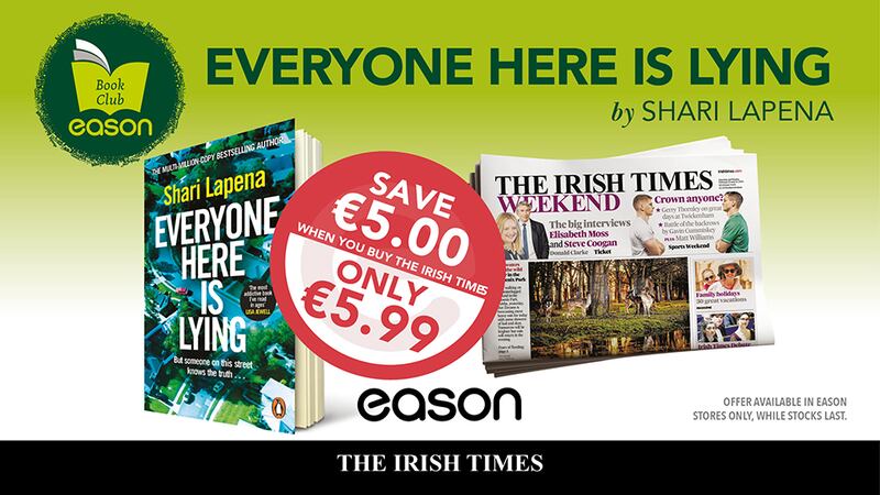 This weekend’s Irish Times Eason offer is Everyone Here Is Lying by Shari Lapena, just €5.99 when you buy the newspaper, a €5 saving.