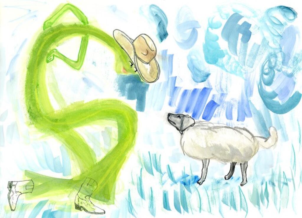 There was a dog called Geoffrey who was on his way to the Spar to get lightbulbs. He was feeling down because he had dropped his favourite lightbulb and it had shattered. As he was walking along, he saw a blade of grass wearing a cowboy hat. He was completely befuddled.