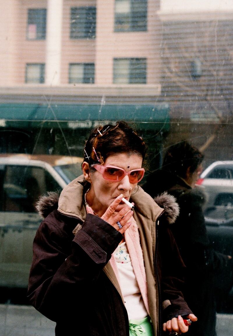 JOD: This was the first picture Barry showed me. I loved the detail: the hairclips, the pink glasses, the forbidding look that says ‘Don’t mess with me’. And the ghostly figure standing behind the woman put me in mind of the dichotomy Barry has identified about The Tenderloin; the lawless wildness side by side with the so-called urban sophistication.