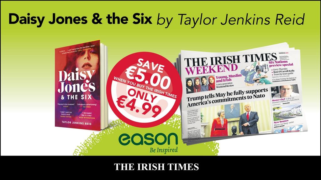 Daisy Jones and the Six by Taylor Jenkins Reid is this weekend’s Irish Times Eason offer. You can buy the bestseller, about a wild Californian singer and a tension-riven 1970s rock band who recount how they united for their best-selling album, for just €4.99, a saving of €5, at any branch with the purchase of a copy of The Irish Times. It has been optioned by Reese Witherspoon’s company for an Amazon series (the novel, not The Irish Times, sadly).