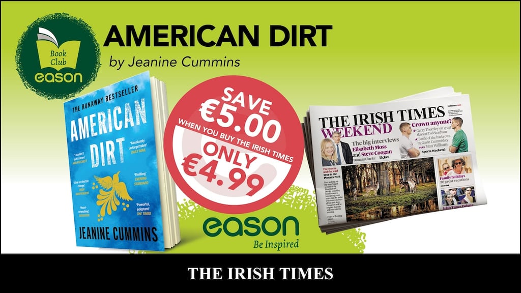 American Dirt by Jeanine Cummins is this week's Irish Times Eason offer. With every copy of The Irish Times bought in any branch on Saturday, you can buy a copy of the bestseller for only €4.99, a saving of €5. Read our review and an interview with the author.