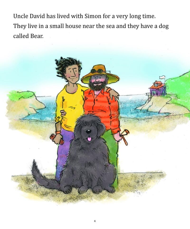 Bear, the big black dog who belongs to Uncle David and his partner Simon, is brought to life in all his chaotic giant dog glory, as is their niece who acts as ring-bearer at the ceremony and gets into just as much trouble as Bear. It was important to me that children enjoyed the story and could laugh along with all the wedding mishaps as well as seeing two men who love each other getting married. Children have already told me how much they love Bear and want him to feature in more books!