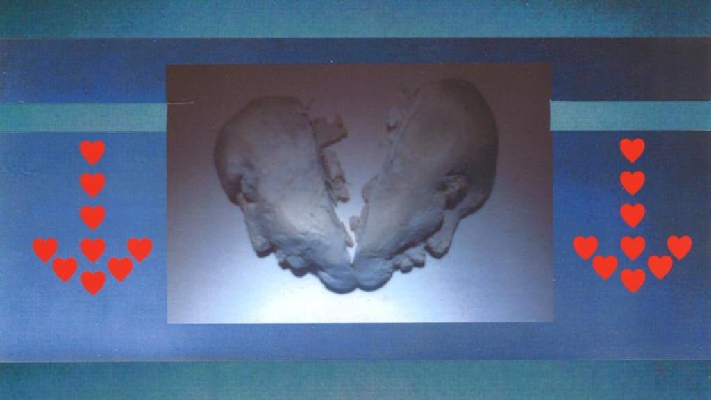 We sit with the lawyer and bookishly exchange banter about how agreeable we are. We share her because we’re having a cooperative divorce. We sign our names and he smiles and the little poison heart on his cheek blinks.
