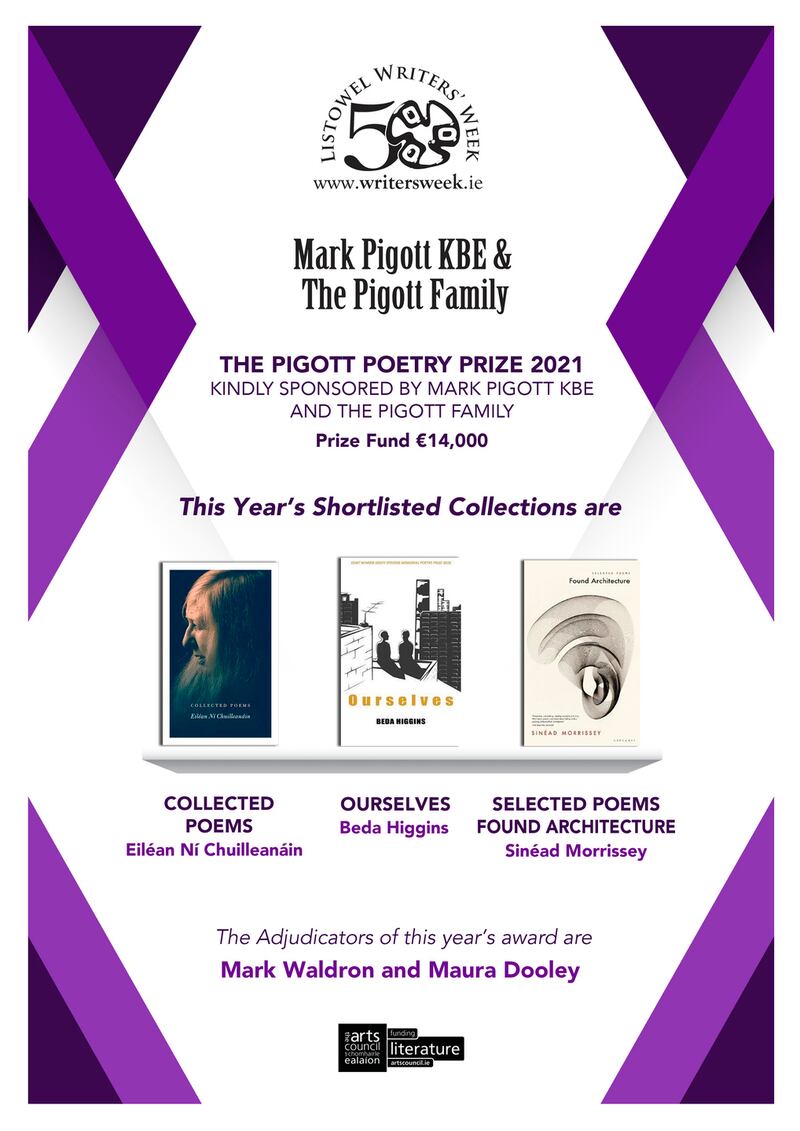 The prize is sponsored by Mark Pigott, who said, “It is a blessing to be able to support this wonderful literary award and recognise the leading poets of Ireland. This is the 8th year of the prize and the competition is world class. I would like to thank our adjudicators, Mark Waldron and Maura Dooley, for their hard work and thorough review of all the entrants and congratulate them on their excellent selection of this year’s shortlist which showcases the beauty, diversity and strength of Irish Poetry”.