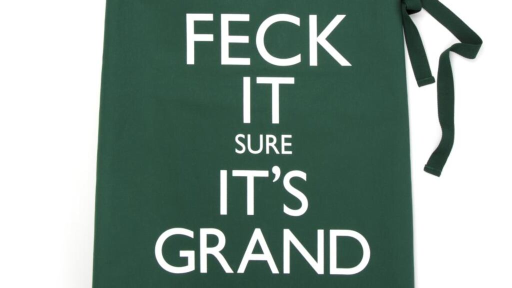 I recently passed a shop in Dublin that was advertising in its front window an apron aimed at tourists, emblazoned with the words “Feck it, sure it’s grand”. Merchandise with this phrase and versions of it, such as “Keep going, sure it’s grand”, have joined those awful T-shirts that graphically declare our national pastime to be getting drunk and falling over.