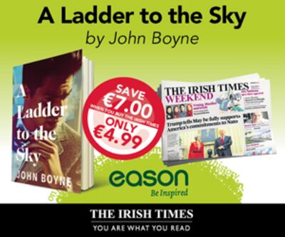 As if all that wasn’t enough, your purchase of The Irish Times in any Eason store this Saturday also entitles you to €7 off the cover price of A Ladder to the Sky by John Boyne. Bargain!