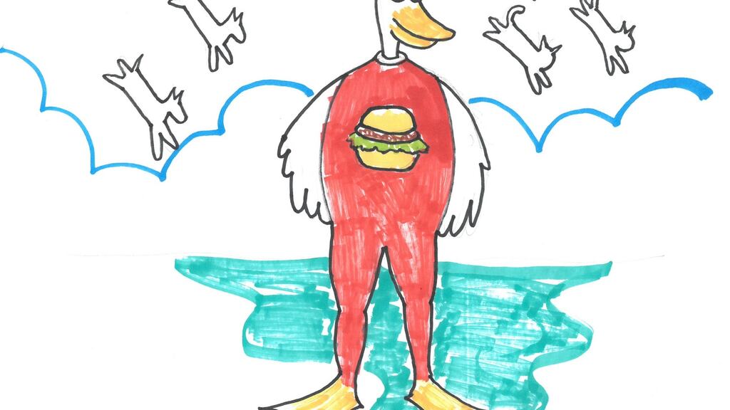 Mr Ducky said to Peggy, “Give me some burgers.”