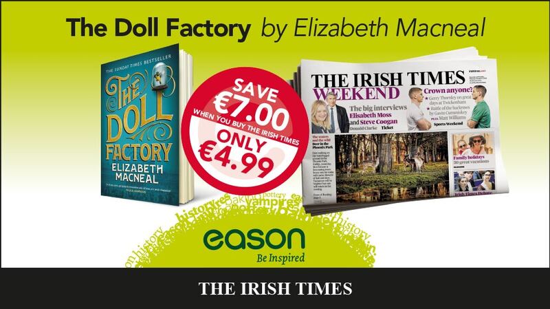 This Saturday’s Irish Times Eason offer is The Doll Factory by Elizabeth Macneal. When you buy the newspaper at any branch, you can purchase a copy of the page-turning thriller for just €4.99, a saving of €7. Anna Carey, reviewing it in The Irish Times, wrote: “Emotionally and intellectually engaging, Elizabeth Macneal’s debut is a stunner”.