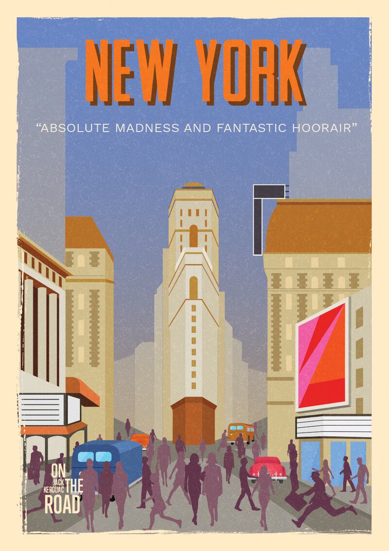 With an air of sadness, Sal reflects on his return to where the journey started: “I had travelled eight thousand miles around the American continent and I was back on Times Square, and right in the middle of a rush hour, too, seeing with my innocent road-eyes the absolute madness and fantastic hoorair of New York with its millions and millions hustling forever for a buck among themselves, the mad dream – grabbing, taking, giving, sighing, dying, just so they could be buried in those awful cemetery cities beyond Long Island City.”