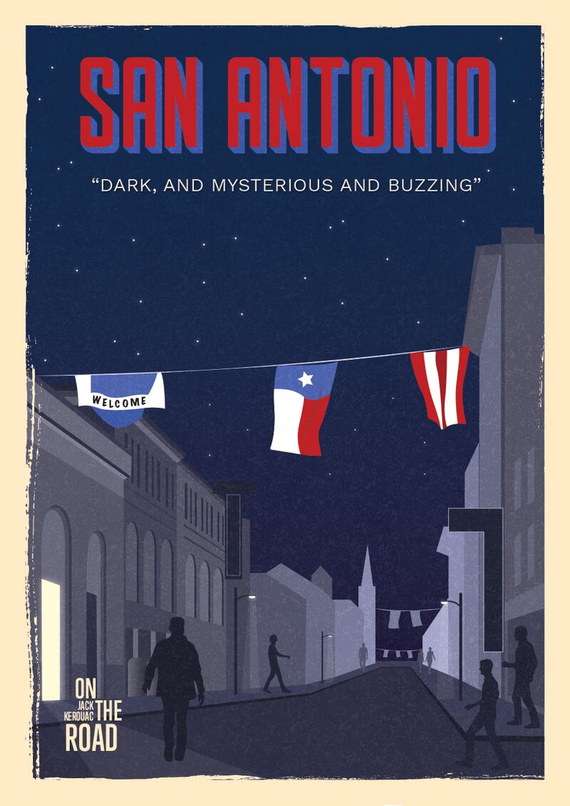 Sal and Dean spend an evening wandering through San Antonio’s “fragrant and soft” air, where the streets are “dark, mysterious, and buzzing”.