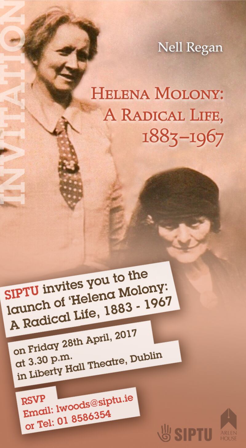 Nell Regan is a poet and non-fiction writer. She was a recipient of the 2016 Patrick and Katherine Kavanagh Fellowship. www.nellregan.com @nellree Helena Molony: A Radical Life 1883-1967 (Arlen House) is being launched in Liberty Hall, Dublin on April 28th at 3.30pm. All welcome
