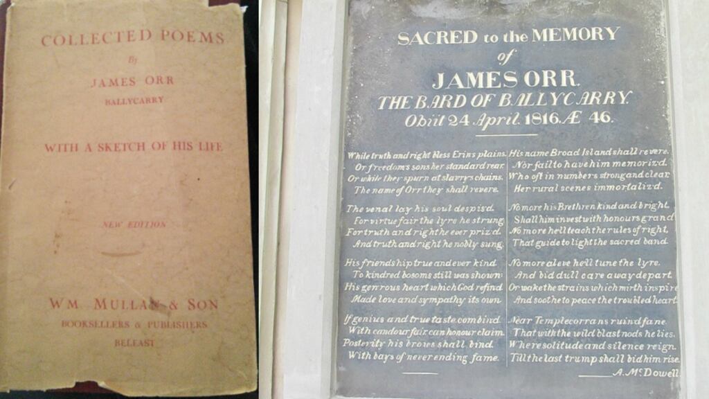 Just one day after the Shakespeare celebration, and simultaneous with the centenary of the outbreak of the Easter Rising, another anniversary, a bicentenary, will pass almost unremarked. Tucked in a historic graveyard in a quiet corner of Co Antrim stands a monument to a poet, James Orr, who died 200 years ago on April 24th, 1816.