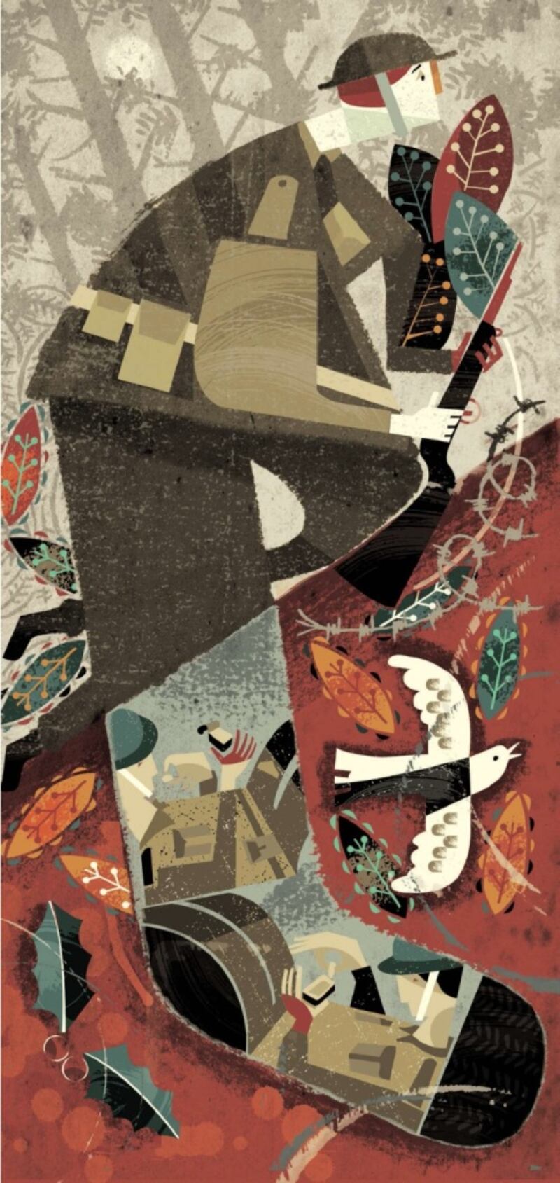 Hawke took a piece and chewed on it, the flavour of almond and honey sweetening his saliva. He stepped down into the trench and continued along into one of the empty foxholes, placing his rifle beside him and leaning into the wall, closing his eyes. Sounds in the distance, across the fields, beyond the stepladders and the barbed wire, the divots and the bloodied mud. Boots dancing on the duckboards. The shelling starting, the guns firing. The noise of the men as they fell down into their lines. Christmas Eve and no rest for the wicked. He grabbed his rifle again and settled the Brodie on his head. He needed to be at ladder five. No time to waste. Rockets exploded in the sky above him, one of the great free light-shows on earth. Better here than in a forest all alone, he decided, as he put his boot on the rung and climbed up, not hesitating as he threw himself over, stood up straight and started to charge.