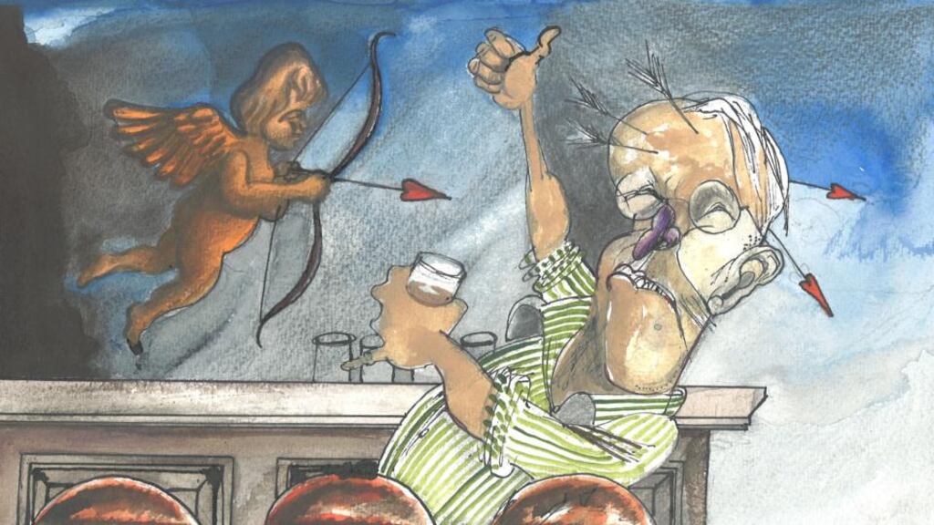 And you won’t tell her that from the moment you caught a glimpse of her in the mirrored bar tiles, her face red and flushed from the cold, your heart leaped. Even now, after all these years. Or that you pulled yourself up taller and sucked in your stomach. Or that you unfurled your rumpled shirtsleeves and straightened your tie, decided to tug the tie off completely and opened a shirt button, or two. Or not, after revealing a thatch of wiry grey hair.