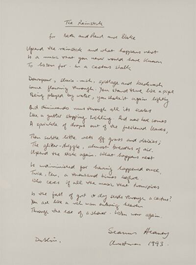 Sensing that he needed more space, literally and psychically, he agreed in 1992 to let me assist him rationalise his writing studio in the attic of his Strand Road home. The work we did during the 1993-1994 academic year was the first step towards the creation of the Heaney archives at both the National Library of Ireland and Emory University in Atlanta, Georgia.