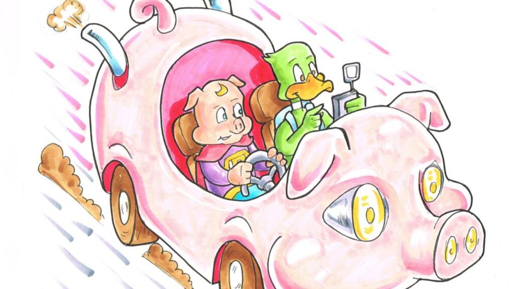 So Super Pig and Quack jumped in the Pig Mobile and set the GPS for the Corn Fields in the Corny Empire.