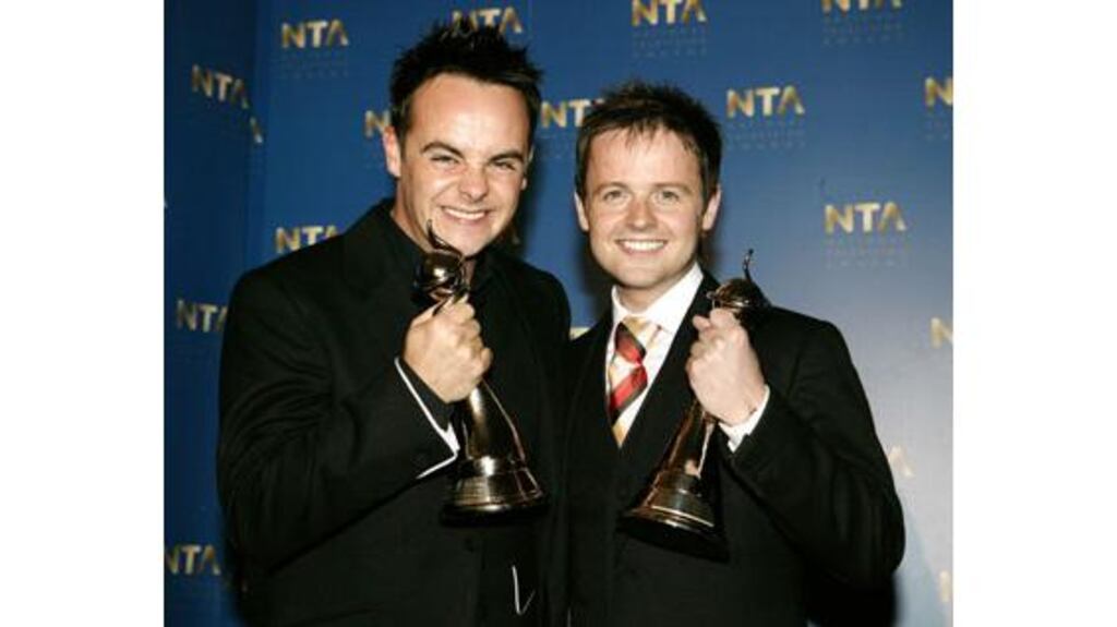 Ant and Dec are the face of Saturday night television in Britain, their appeal spanning across the generations. What you see is what you get with Ant and Dec, and they are just as engaging off-screen. They exude enthusiasm for their work, and their symbiotic relationship is reflected in the way they finish each other's sentences. Two minds think as one.