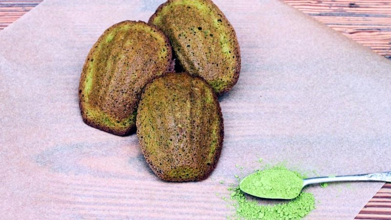 INGREDIENTS 100g butter, plus a little more for greasing the madeleine tray 2 free-range eggs 100g caster sugar 1 teaspoon of vanilla essence 100g plain flour ½ teaspoon of baking powder 2 teaspoons of green tea powder (matcha)