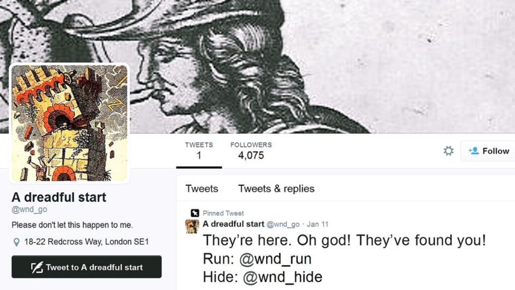 A compelling and utterly creepy text-based game that plays out entirely on Twitter