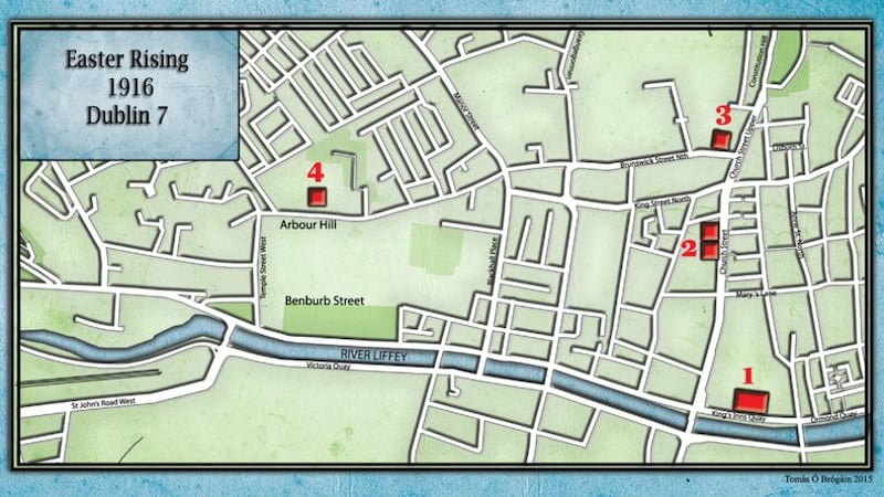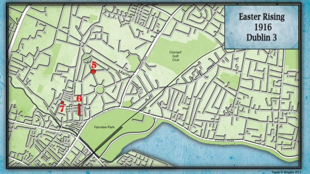 The Easter Rising began on Easter Monday – April 24th – 1916. The rebel leader Pádraig Pearse agreed to an unconditional surrender on Saturday, April 29th. This extract from Joseph EA Connell jnr's book Dublin Rising 1916 explores the city street by street. Here he looks at some of the key locations in Dublin 3 and Dublin 7.