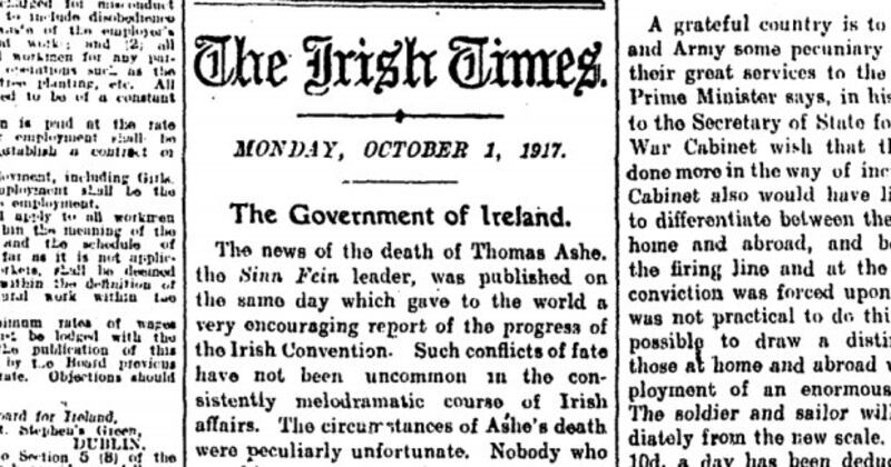 The news of the death of Thomas Ashe, the Sinn Féin leader, was published on the same day which gave to the world a very encouraging report of the progress of the Irish Convention.