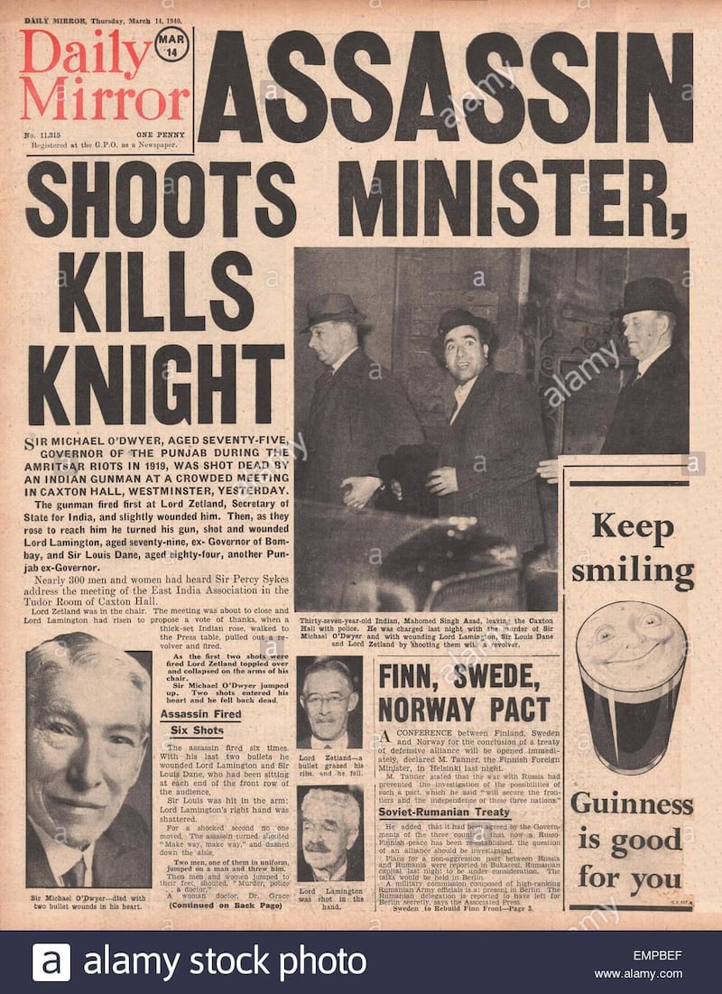 At his trial, he justified the assassination of O’Dwyer. “He wanted to crush the spirit of my people, so I have crushed him. For full 21 years I have been trying to wreak vengeance. I am happy that I have done the job. I am not scared of death. I am dying for my country.”