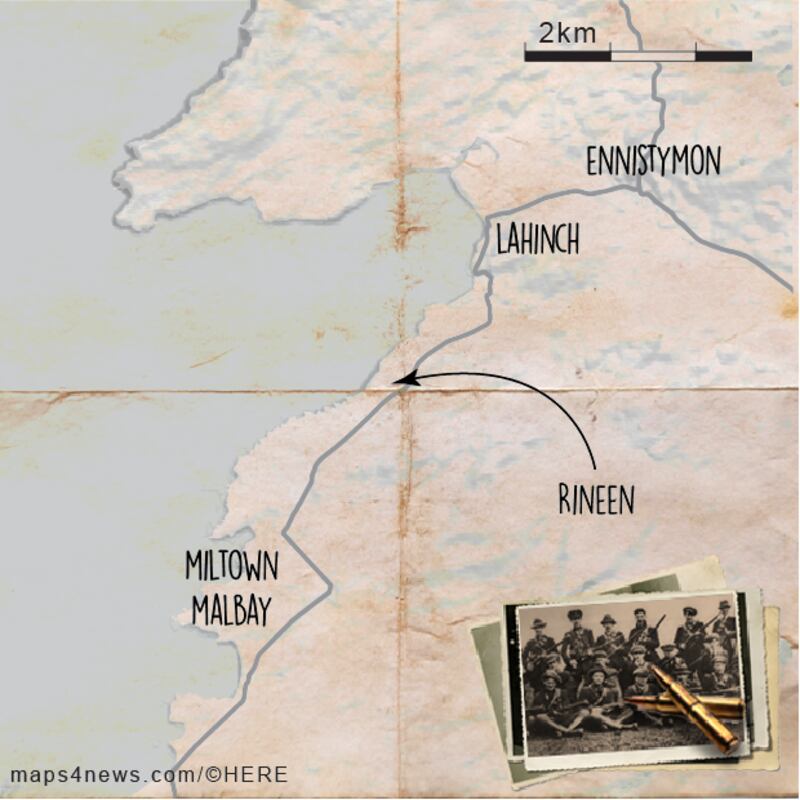 The largest ambush in Clare occurred on September 22nd, 1920, when five RIC men and a Black and Tan were killed and seven wounded at Rineen between Miltown Malbay and Ennistymon in west Clare.