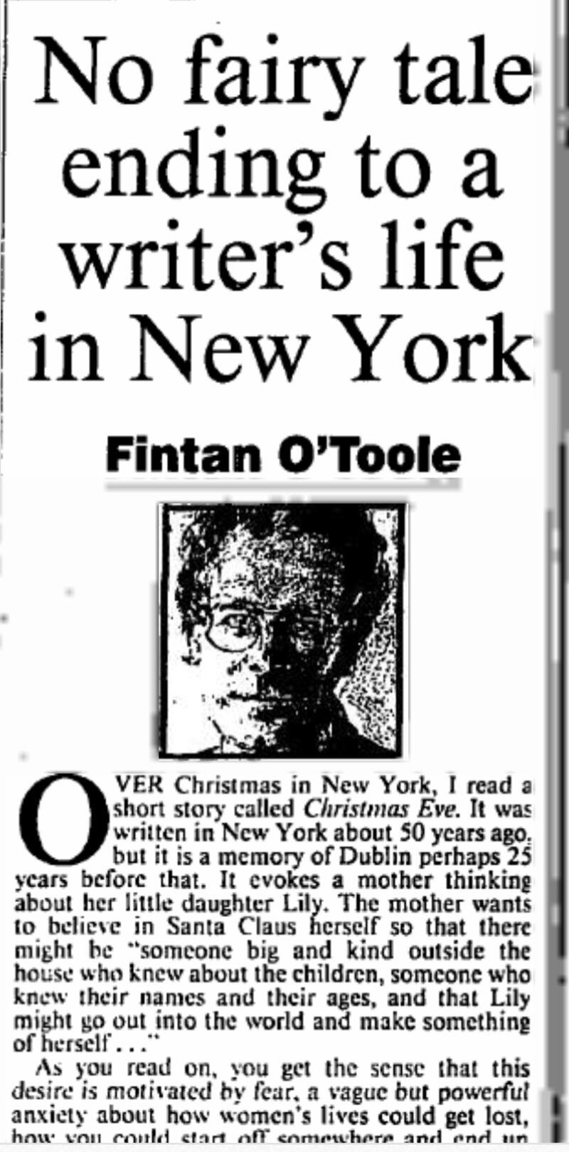 Remarkably, it wasn’t until 1998 that her death was mentioned in the newspaper, when Fintan O’Toole wrote a piece headlined “No fairy tale ending to a writer’s life in New York”.