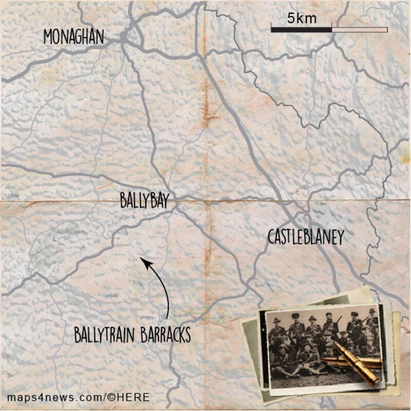 The best-known operations include the capture of the RIC Barracks at Ballytrain on February 14th, 1920, an attack on a police patrol at Ballybay on new year's day, 1921, during which one policeman was killed and an ambush near Stranoden on January 22nd, 1921, in which three policemen aged 18, 19 and 24, all ex soldiers, were killed.