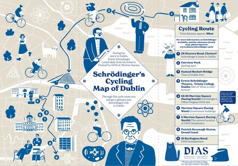Today you can follow in his footsteps – or more precisely his cycle tracks – as a new self-touring guide is launched in recognition of Schrödinger’s attachment to the Irish capital. The Austrian physicist cycled daily from his home in Clontarf to Dias at Merrion Square – and the 10km cultural trail takes in sites associated with his stay.