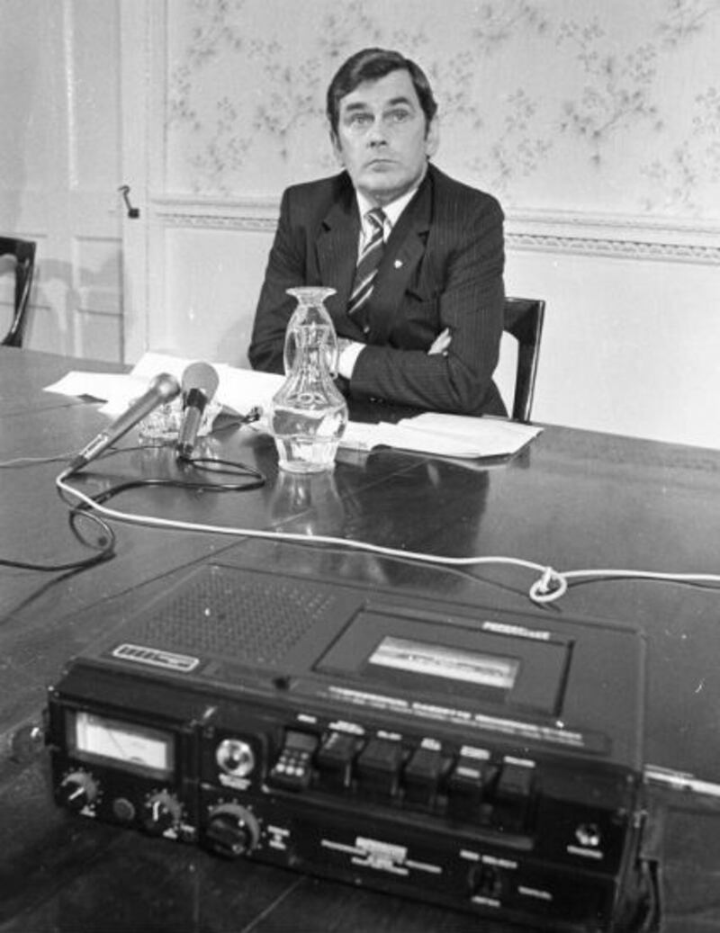 As a portrait of a politician under pressure, this picture would be masterful enough. But what is it a picture of, really? Yep. A tape recorder.