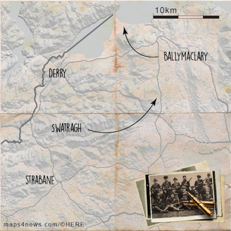 His files mark him out as one of the most energetic IRA members in south Derry. In one attack on June 5th, 1921, RIC sergeant Michael Burke was shot dead and others seriously wounded in an ambush shortly after midnight on the barracks at Swatragh.