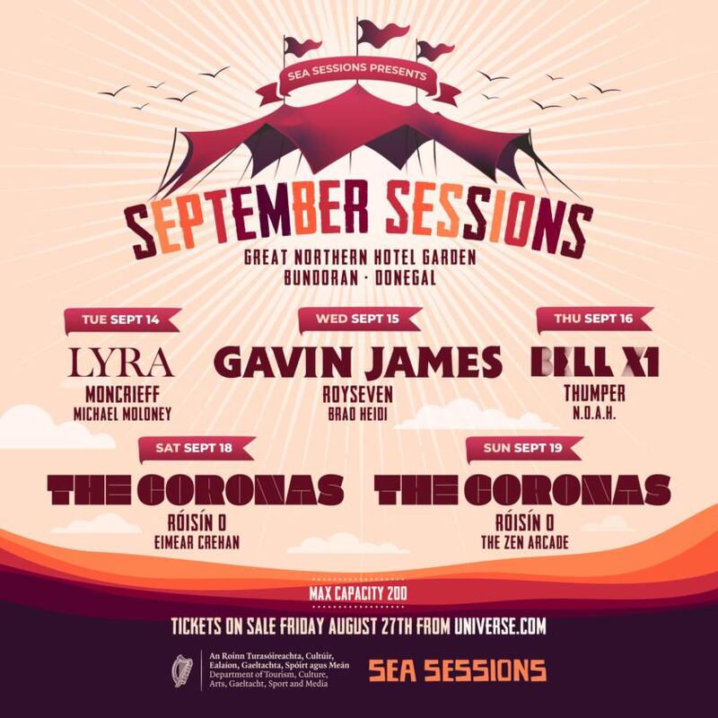 Tuesday, September 14th, to Sunday, September 19th (excluding Friday, September 17th), Great Northern Hotel Garden, Bundoran, Co Donegal, universe.com/septembersessions