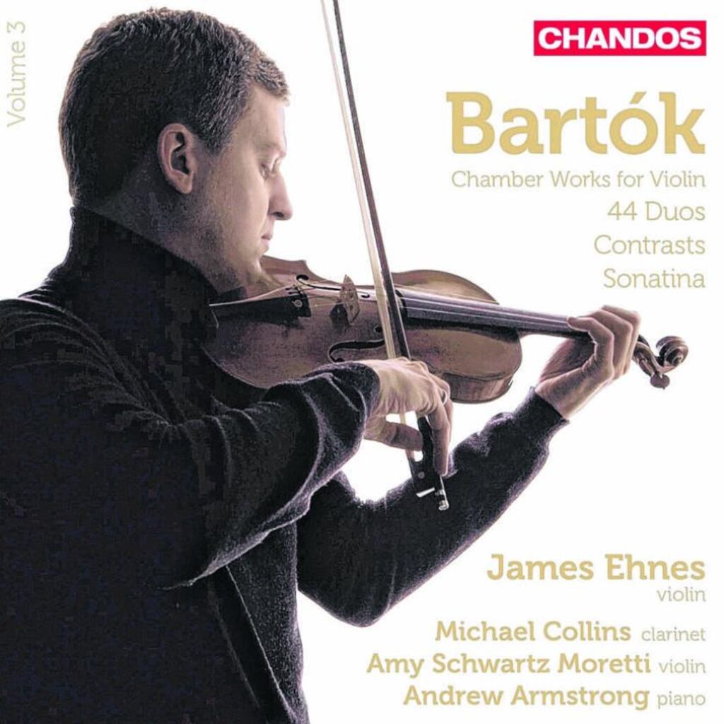 At 48 minutes, the longest work here is the 44 Duos for two violins. Bartók wrote these short pieces at the request of German pedagogue Erich Doflein, who wanted contemporary music to be integrated into the earliest stages of music education. The music is folk-inspired, with borrowings from a number of cultures, but the flavour is also fully contemporary, with clashes between the lines that are pure Bartók. James Ehnes and Amy Schwartz-Moretti play them with exquisite care, as if they regard them as a sequence of miniature jewels. The performances of the other works are equally fine: the Sonatina that André Gertler arranged from a solo piano work, and Contrasts, written for Benny Goodman, here given a clear, bracing account. url.ie/f1f2