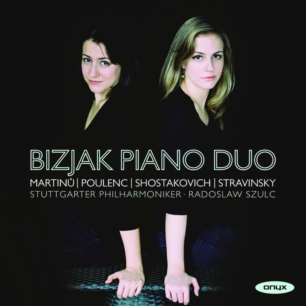 Fizz, froth and high jinks characterise this album of music for two pianos. The Concerto for two pianos written by the Czech composer Bohuslav Martinu in 1943, early in his US exile, is breezy and busy. Francis Poulenc described his 1932 Concerto as "gay and direct", and its many borrowed flavours include an imitation of a Balinese gamelan. The concertos frame pieces for two unaccompanied pianos. Stravinsky's Sonata, also written in 1943, grew from a solo piece into a work for four hands. In 1953, Shostakovich wrote his Concertino for his teenage son Maxim, making it sound more difficult than it is. Serbian sisters Lidija and Sanja Bizjak and the Stuttgart orchestra play this cheery selection with brio. onyxclassics.com