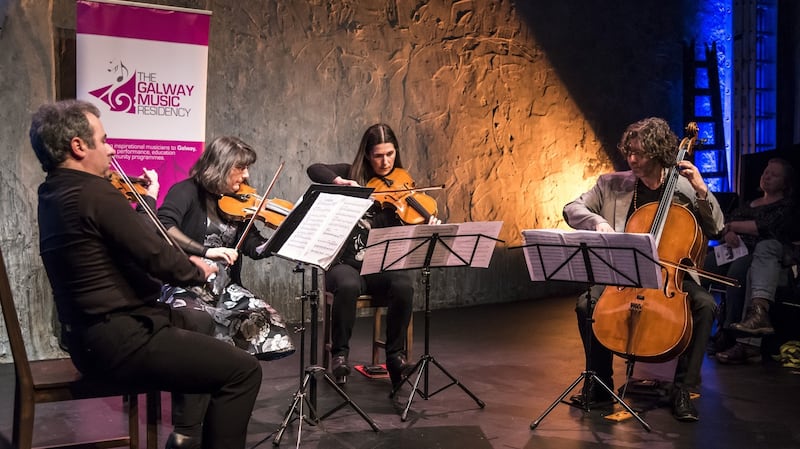 The four members of the Galway ConTempo Quartet, who relocated from Romania to the west of Ireland to become the Galway Music Residency’s ensemble-in-residence in 2003, celebrate their 25th anniversary as an ensemble this year.