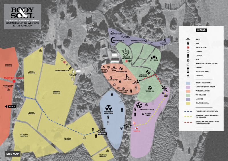 [ here to download the map as a PDFOpens in new window ][ bodyandsoul.ieOpens in new window ]Helen Nic Giolla Rua, left Orlaith Ross and Laura Nolan at last year's Body and Soul Festival. Photograph: Brenda Fitzsimons