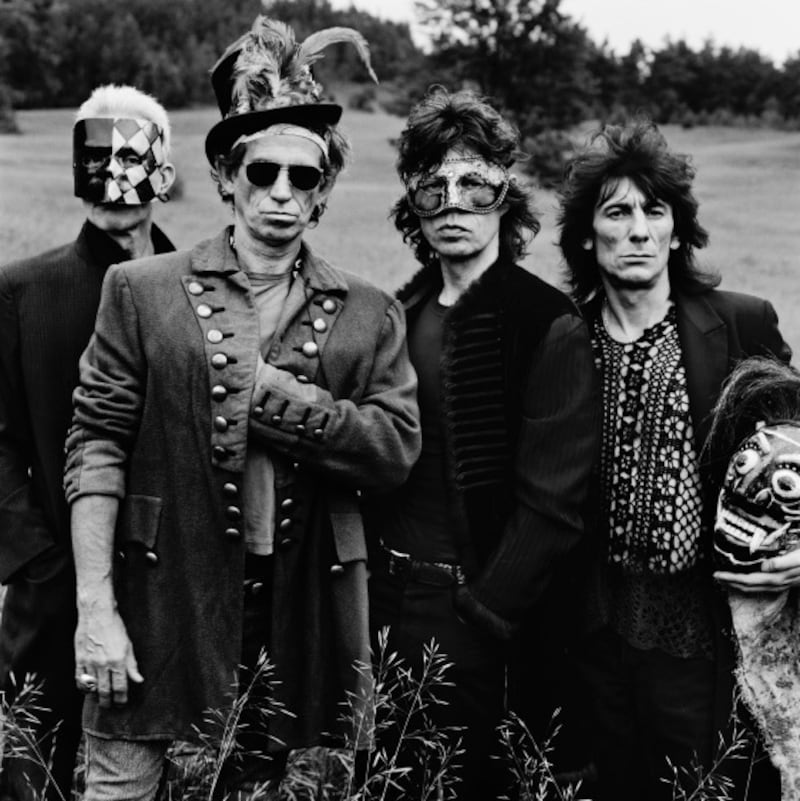 A shot of The Rolling Stones from 1995 features each band member with something on their head, though Charlie Watts’s expression suggests he was under considerable sartorial duress.
