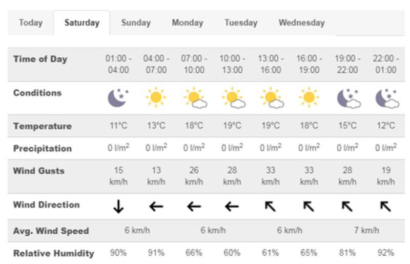 Temperatures are expected to be about 14 degrees Celsius and it will be slightly overcast. As this is an outdoor event, it will take place rain or shine. Check the weather before you leave the house and dress appropriately. Bring suncream, wear outdoor footwear in case of mud and remember that umbrellas are not allowed inside the venue.