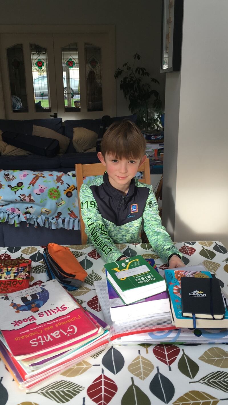 This photo was taken at 8.59am on Friday, March 13th, 2020. The schools closed the day before and this was the first day of homeschooling for Sean Conway from Ennis, Co Clare. The novelty soon wore off!