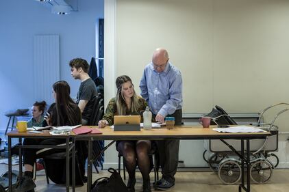 Actor and photographer Ste Murray blends his two worlds, taking his camera inside the rehearsal room as director Peter Sheridan watches over him and his castmates Kate Gilmore, India Mullen, Clelia Murphy and Fionn Foley, in Shay Linehan’s new stage adaption of the Maeve Binchy novel
