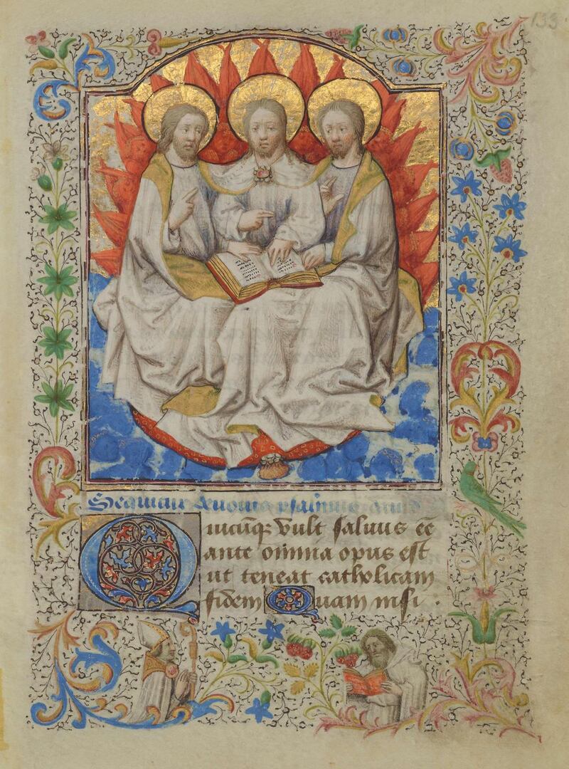 Each tiny painting is pretty much like a full-size altarpiece in miniature. The iconography is the same, and the level of detail is mind-boggling. Variations on the theme of the Virgin and Child and the Holy Family abound. Over 40 miniatures are given over to the saints, with quite a number of martyrdoms, usually depicted in grisly, matter-of-fact detail: beheading is the most common means of execution, as with St Denis, but there were other nasty forms of death.