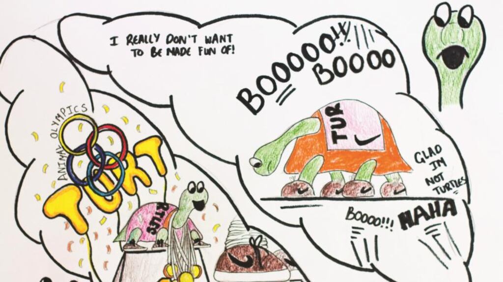 Turtles was a turtle, but no ordinary turtle. Turtles wanted to race in the Animal Olympics. Turtles decided he was going to try and win the races. Turtles lived in a mansion on the Big Hill. His house was in the water at the top of the hill. The Animal Olympics this year were taking place in a field in a valley next to the hill.