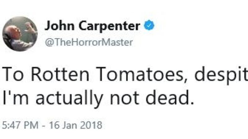 Another artist declared dead this week was John Carpenter, although in an altogether more literal sense, when Rotten Tomatoes memorialised the veteran director in an errant tweet.