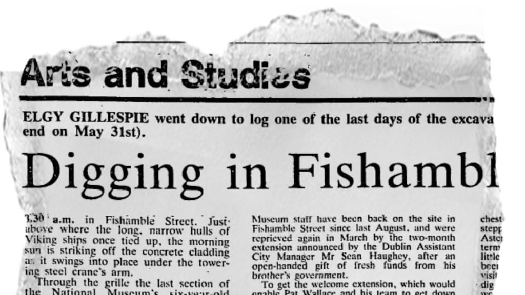 8.30am in Fishamble Street. Just above where the long, narrow hulls of Viking ships once tied up, the morning sun is striking off the concrete cladding as it swings into place under the towering steel crane's arm.